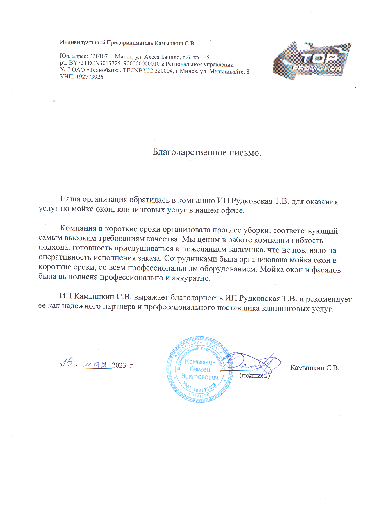 Благодарственные письма от компаний